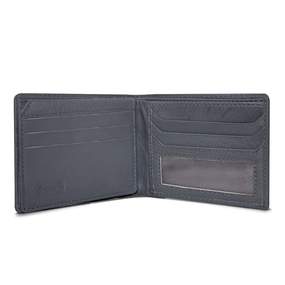 Billetera de cuero genuino en un sofisticado tono gris, con un diseño moderno y detalles de costura que realzan su estilo minimalista. Su interior ofrece múltiples ranuras para tarjetas, ventana para identificación y compartimento para billetes, además de tecnología RFID para mayor seguridad. Funcional, resistente y distintiva, es la opción perfecta para quienes buscan elegancia y practicidad en un solo accesorio.